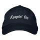 The design was easy to do with a number of options both the hat style, color and so forth. These aren't some printed letters, these are the real deal stitching. The two hats arrived quickly. I've used Zazzle in the past for shirts a number of times and this is the first time for a hat. Zazzle is absolutes the best in every respect; customer service, product selection and results. The embroidery was just right. My artwork was turned into a professional look thanks to Zazzle.