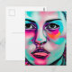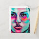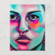 Say hi to a friend or family member with this pretty art card. Urban street art women's face AI generated art. Close up of face. Teal, white, pink and black colors.