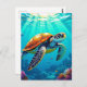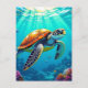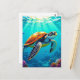 Beautiful ai illustration of a sea turtle swimming through the ocean with vibrant colorful postcard. If you are travelling, vacationing or just collect postcards, here is a unique one for you!