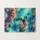Cute turtle themed puzzle. An ai illustration of a sea turtle swimming in the ocean.