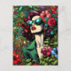 Have a beautiful day. A pretty postcard to send a friend or family member. Hyper realistic comic book style pretty woman sunglasses standing in a flower garden. Colorful ai art.