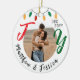 This Customizable Couples Photo Christmas Joy Modern Ornament, with it's bright festive colors, and minimal design, is the perfect gift, keepsake or addition to your holiday decor. Other product variations are available below. This product design can be purchased as is with your customization, or transferred to another product.