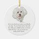 I was looking for an ornament for our dog, who we had to put down in April. I found it on Zazzle! Not too big, and her photo is very clear. I would recommend it if you are looking to remember an old pet this time of year. Not quite centered..