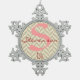 Customized Snowflake Christmas Ornament, Family Name, Initial, and Year Established; Pink & Burgundy on Gray Chevron