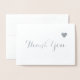 A nice 'love and thanks' design... front of the card: the words 'Thank You' in a silver foil script font; inside-front: your special photo; inside-back: custom words and your names; back; a small gold-foil-heart