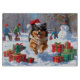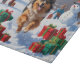 Keeshond Dog Running in Snow with Christmas Hat Cutting Board