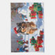 Keeshond Dog Running in Snow with Christmas Hat Kitchen Towel