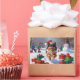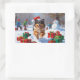 Keeshond Dog Running in Snow with Christmas Hat Rectangular Sticker