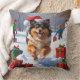 Keeshond Dog Running in Snow with Christmas Hat Throw Pillow