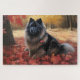 Keeshond in Autumn Leaves Fall Inspire Jigsaw Puzzle