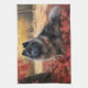 Keeshond in Autumn Leaves Fall Inspire Kitchen Towel