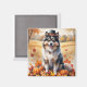 Keeshond In Autumn Leaves Thanksgiving Art Magnet