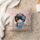 Keiko Kokeshi Doll - Blue Kimono Geisha Girl Throw Pillow