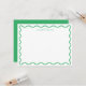 A fresh and modern note card featuring a vibrant kelly-green wavy border with matching personalized text. The bright green frame adds an uplifting, clean, and lively touch while the minimalist layout keeps your message beautifully clear. Perfect for everyday correspondence, thank-you notes, personal messages, or gifting as part of a stylish stationery set. This kelly green design brings a crisp, contemporary look to handwritten notes.