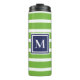 Kelly Green Stripe Navy Modern Monogram Coastal Thermal Tumbler