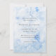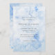 Elegant wedding save the date featuring your event details over a hand painted blue watercolor background.