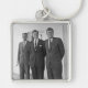 The Kennedy Brothers together at the White House, President John F. Kennedy, Senator Ted Kennedy and Attorney General Robert Kennedy on a key ring chain. This official vintage black and white photo was taken outside the Oval Office on August 28, 1963. President United States, retro, photograph, photography, Teddy, Bobby