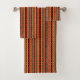 This is an African-inspired colorful multi-color Kente style pattern in the form of verticle stripes added to this custom printed towel set. This towel set will look great in your bathroom!
