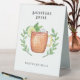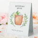 This tabletop sign features a mule drink in a copper cup with a laurel leaf crest surrounding the drink.