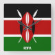 Kenya Flag Dazzling Patriotic Square Wall Clock in the colors and the elements of the Kenya national flag covering the front of the clock. National flag colors are complemented with the text "Kenya" on the bottom. Text is fully customizable using "Customize it!" feature. Feel free to change it, remove it or add your own. This charming design is the stunning gift and the great show piece on the wall. © CountriesOfTheWorld