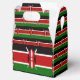 The Kenyan flag is a horizontal tricolour with in the center an emblem. The used colors in the flag are red, green, black, white. The proportion of the Kenyan flag is 2:3. The Flag of Kenya was adopted in 1963.