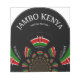 The artwork features a central, circular design that boldly incorporates the colors and the iconic Maasai shield of the Kenyan flag. Curved banners above and below the circle display the beloved Swahili phrases: "JAMBO KENYA" (Hello Kenya) and "HAKUNA MATATA" (No Worries). This balanced and visually rich composition merges national symbols with welcoming phrases, creating a distinctive badge-like or emblem feel that expresses both Kenyan pride and a warm, carefree spirit.