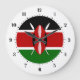 Design with flag of the Republic of Kenya with black, white, red and green stripes with emblem consisting of two white spears and traditional Masai shield