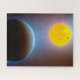 This artist's conception depicts the Kepler-10 star system, located about 560 light-years away near the Cygnus and Lyra constellations. Kepler has discovered two planets around this star. Kepler-10b is, to date, the smallest known rocky exoplanet, or planet outside our solar system (dark spot against yellow sun). Kepler-10c is the larger foreground object.