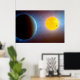 This artist's conception depicts the Kepler-10 star system, located about 560 light-years away near the Cygnus and Lyra constellations. Kepler has discovered two planets around this star. Kepler-10b is, to date, the smallest known rocky exoplanet, or planet outside our solar system (dark spot against yellow sun). Kepler-10c is the larger foreground object.
