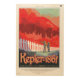 A wonderful, retro-style advert in an art-nouveau tradition. Kepler-186f is the first Earth-size planet discovered in the potentially 'habitable zone' around another star, where liquid water could exist on the planet's surface. Its star is much cooler and redder than our Sun. If plant life does exist on a planet like Kepler-186f, its photosynthesis could have been influenced by the star's red-wavelength photons, making for a color palette that's very different than the greens on Earth. This discovery was made by Kepler, NASA's planet hunting telescope.