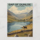 A postcard of the Gap of Dunloe in Killarney National Park, Ireland, showing a narrow mountain pass, serene lakes, and lush, rugged landscapes home to beautiful horses.