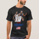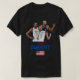 My 11 yo wore adult XL (5’7” 165#). The 8yo is small framed. She wore adult small and tied it in the back. Grandma wore adult large with long sleeve shirt underneath. Tall girl adult medium. Dark haired male adult large. Good quality dark Heather gray, Gildan brand shirt. -it was next up from basic choice and cost about $20 per shirt. Not too thick or thin. Washed and dried well, no major shrinkage. Not see-through. Can wear a bra under it fine. Screen print is just as shown and well done, front and back.