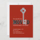 Customizable moving announcement featuring a vintage key with a heart in center that also holds the place of the letter "e" in the word "Moved".