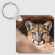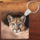 This key chain is shown in the square style with a photo print of a wild mountain lion.