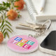 nice thick acrylic. fun little keychain add on. Would also make a fun name tag for water bottle or lunch box, backpack. cute design came out perfect.