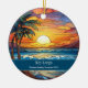 Cute faux stained glass beachy scene, personalizable Key West Beach Trip souvenir. Great for Christmas and family vacation keepsake, or honeymoon momento.