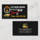 An all black grunge cover features a creative "home key stopwatch" design. This represents an expeditious home moving. Here lies the business name and a slogan caption option to publicize your services. Towards the base of the card is a gold truck moving a home with the phone contact directly below.