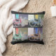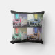 The colorful artwork on this Throw Pillow was made from an original photograph by ZoeSPEAK of a bicycle parked outside a shop in Key West, Florida. Clothing from the shop hangs on the open door behind the bicycle. The photo is done in four color schemes, red bike, blue bike, green bike and yellow bike, with corresponding clothing colors. The backgrounds are in muted shades of mauve and olive grays, and the overall background is a marbled black.