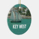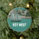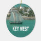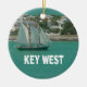 Key West Florida Keys photo of a sailboat passing on the ocean with houses and palm trees in the background. Celebrate happy memories of your tropical vacation or a place you love. For Christmas ornament or anytime.