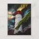 Key West Florida lighthouse at night vintage postcard reproduction with dramatic colors, palm trees, moon.
