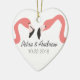 This couple's ornament has been designed to coordinate with the "Key West Modern Whimsy" wedding collection. It features a pair of pink flamingos with the bride and groom's name and wedding date on both sides. This is a thoughtful gift for newlyweds, engagements, anniversaries and other special occasions.