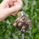 The key chain is made of metal and really sturdy. The flower design is really cheerful. The logo and colors are clear and crisp!