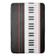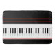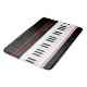 This whimsical bath mat is perfect for pianist and musicians. The Bath Mat features a piano keyboard wrapped around a white background, black and red accent. stripes. Keyboard Serenade also has matching towels, a bath set and shower curtain.