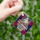 The key chain is made of metal and really sturdy. The flower design is really cheerful. The logo and colors are clear and crisp!