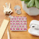 Keychain featuring a repetitive pink floral pattern with green leaves on a white background. The design is vibrant, cheerful, and eye-catching.