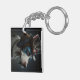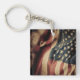 This patriotic keychain has a rustic looking flag on one side and a patriotic dog with Uncle Sam hat.