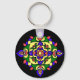 A keychain with a brightly colored Rangoli pattern on a black background, from a digital design by Judy Adamson. Perfect small gift for Diwali!