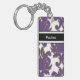 Designer keychains with names with purple damask designer pattern. Designed as keychains for women or keychains for girls, in a fun two sided acrylic keychain design. Lets you carry your keys in style.