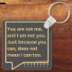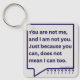 Keyring with thought poem quote 'You are not me, and I am not you, just because you can, does not mean I can too'. By LizziesJumbledWorld. Gray backgrounds.