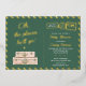 Travel themed suitcase invitation in green and gold foil for a baby boy shower - "Oh, the places he'll go!" The foil color can be changed to silver or rose gold. Please notice that the invite is not an actual postcard and should be mailed in an envelope. If you'd like to order this design with a postcard back, please contact us. Matching designs can also be found in our shop.